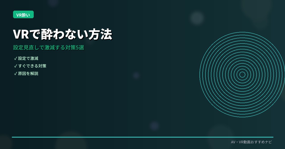 VR酔いの原因は「目が見る動きと体の感覚のズレ」。7つの対策を実践するだけで、ほとんどの人が快適に視聴可能になります。特に最初の3つは即効性があり、今すぐ試せます。